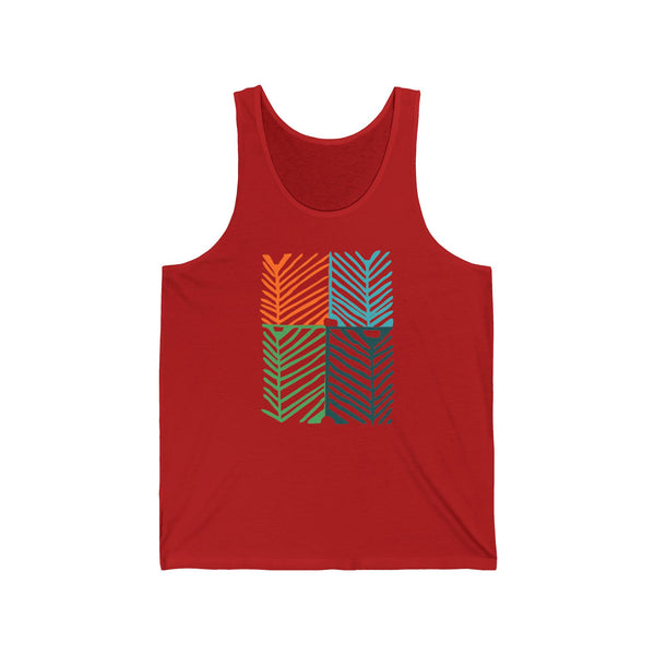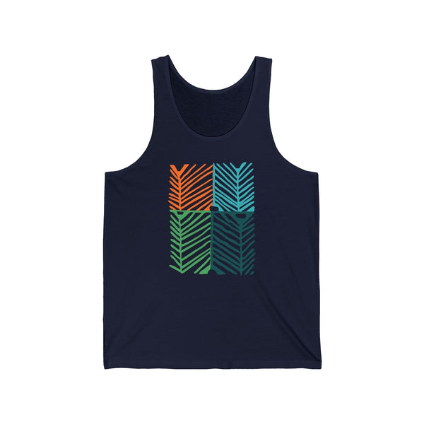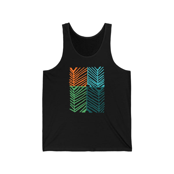 This Beach Fronds Tank Top features a set of beach fronds in multi colors, a great tropical design. Tank top is unisex for both men and women.
