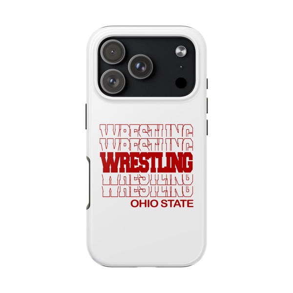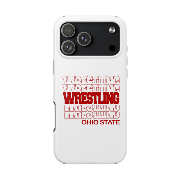 Wrestling Ohio State in Modern Stacked Lettering design features stacked college lettering and Ohio State text. Perfect for any Ohio State wrestlers, wrestling fans, friends and family, moms and dads. Show your pride in Ohio State Wrestling with this tough iPhone and Samsung Galaxy case.